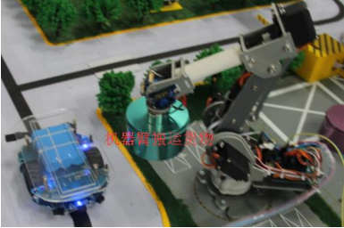 對于不規(guī)則貨物,可采用機(jī)器臂控制系統(tǒng)裝卸貨。六自由度機(jī)械臂的臂部由大臂、小臂組成,一般具有兩個自由度,即伸縮、回轉(zhuǎn)、俯仰或升降,采用單片機(jī)控制運動軌跡。當(dāng)小車到達(dá)裝卸貨指定地點時,通過無線向管理平臺發(fā)出命令,管理平臺接收到后,通過無線通信向機(jī)器臂控制器發(fā)送裝卸貨指令,控制器接收到命令后,就按照指定的取貨位置,操作機(jī)器臂經(jīng)過回轉(zhuǎn)、伸縮、升降、俯仰等幾組動作組合,實現(xiàn)貨物的自動裝卸。貨物裝卸完成后,運輸車自動離開。