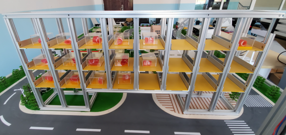 倉儲環(huán)節(jié)主要模擬產(chǎn)品出入倉庫、物品貨架庫位的自動識別、物品信息自動盤點等功能。該環(huán)節(jié)有兩種展示形式,一種是實際倉儲方式,一種在沙盤上模擬。