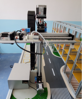 模擬的立體倉庫的庫位是可伸縮移動的。它主要由電動絲杠滑臺、滑臺驅(qū)動器、滑臺控制器三部分組成,安裝在鋁合金框架內(nèi),形成一個至少4庫位的立體倉庫。