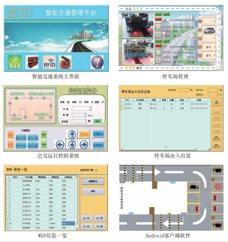 6、城市交通無線傳感網(wǎng)系統(tǒng):城市公交站、泊車位、智能公交車、停車場出入閘機(jī)等Zigbee節(jié)點與主控制器Zigbee協(xié)調(diào)器構(gòu)建無線傳感網(wǎng),實現(xiàn)數(shù)據(jù)的傳輸與狀態(tài)控制,對整個的智能交通系統(tǒng)進(jìn)行綜合信息處理與決策。