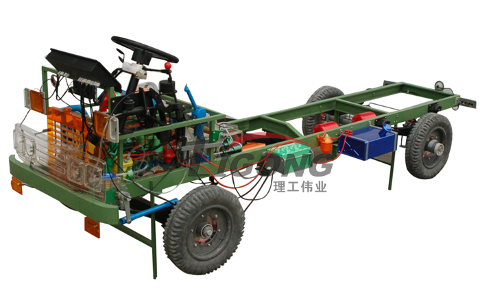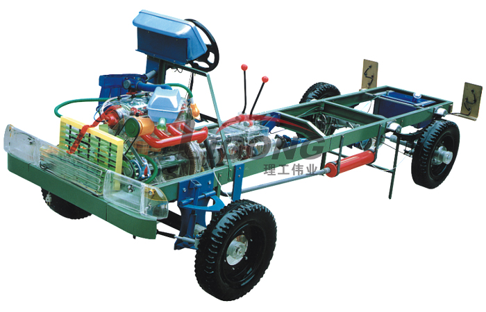 透明汽車整車模型選用透明有機玻璃制作,內中部件均以硬質塑料料加工,用 螺絲固定在金屬高溫烘漆而成的車架上。各總成部分都以壓模成形加 工,代替過去膠粘合的方法,使產(chǎn)品在強度上有很大提高。發(fā)動機總成用電機驅動,在油門處設有調速裝置,能演示發(fā)動機轉速高低。離合器分離明顯,操縱靈活,離合器外殼整體壓模而成,變速箱和各檔齒輪用各種顏色表示,換檔靈活,手制動美觀。后橋外形壓模而成,內中主減速、差速轉動自如,輪轂剎蹄壓模成型,剎蹄可調節(jié),前橋輪鼓可調整,轉向裝置以及電瓶、油箱、水箱,制動管路分布清楚一目了然。電路采用對插件前后分布,燈架、風窗、儀表板、后燈架用透明有機玻璃壓模成整體美觀逼真。
