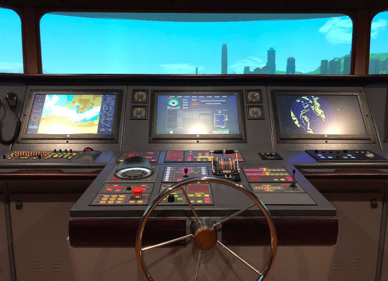 LGM-CB03T型 高速艦艇航海訓練模擬器船舶駕駛室內有雷達、測深儀、GPS、AIS、電子海圖等高科技設備,窗外是寬闊的江面。公司研制的船舶操縱模擬器的建設以高速巡邏艦艇駕駛室為模擬器原型并在此基礎是兼顧了海船的特點,方案的建設內容為船舶操縱模擬器1套,其中包括教練員站1套,120度水平視場角本船1套(采用3通道液晶電視顯示)。本船系統(tǒng)主要由船舶控制模塊、雷達模塊、電子海圖模塊、通訊模塊、導航儀器模塊、音響模擬模塊等構成,其功能和布置與實船基本一致。