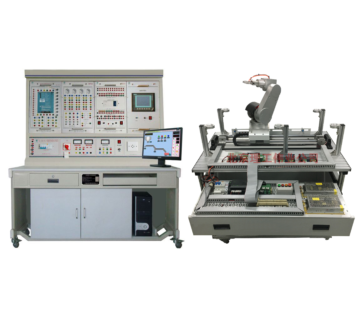 可編程序控制系統(tǒng)設計師綜合實訓裝置由控制屏、實訓桌、PLC模塊、通信模塊、變頻器模塊、模擬實訓模塊、觸摸屏模塊、五自由度機器人、交流電機、電機導軌、測速機構、加載系統(tǒng)、MCGS工控組態(tài)軟件(配加密狗)、導線架等組成。