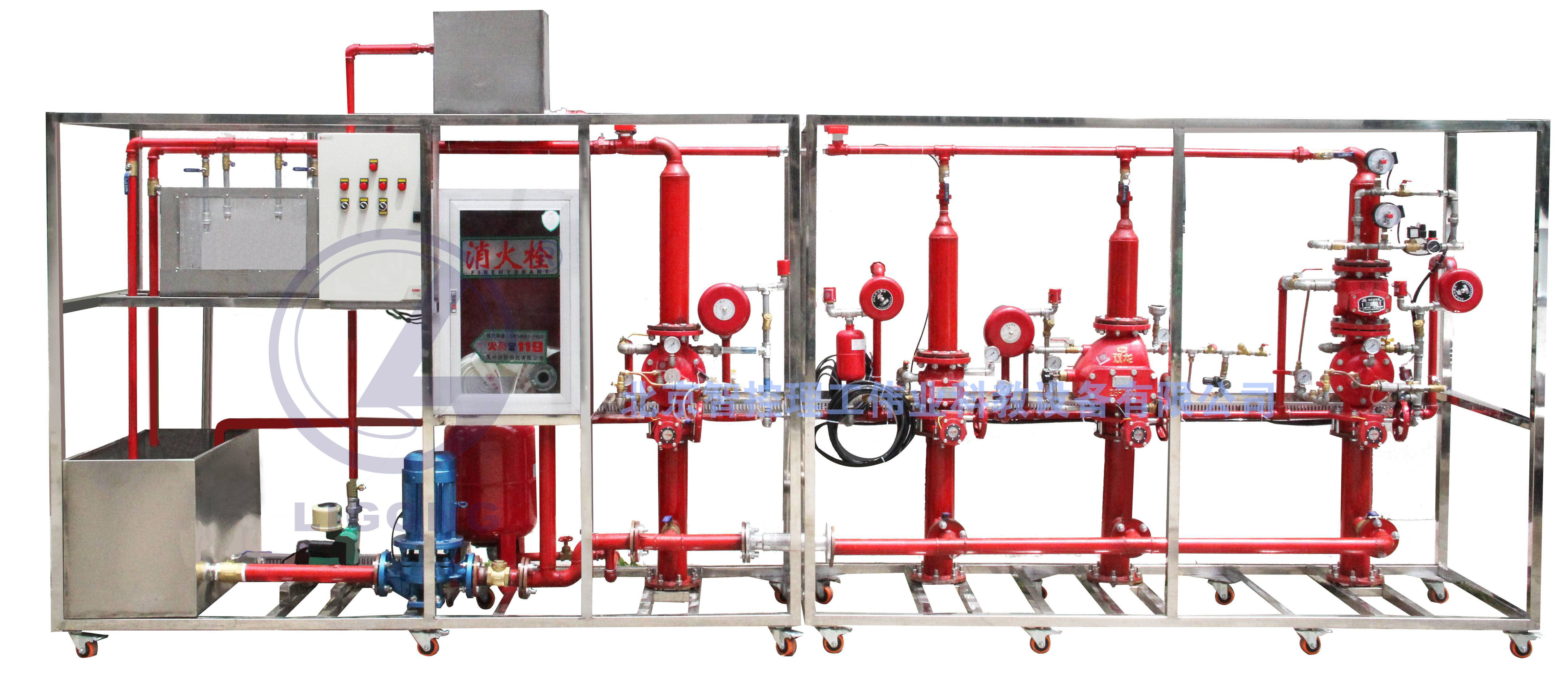LG-LXN05A型 建筑消防系統(tǒng)演示系統(tǒng)分為自動噴水滅火系統(tǒng)、消火栓系統(tǒng)、消防報警聯(lián)動控制中心(選配)三部分;