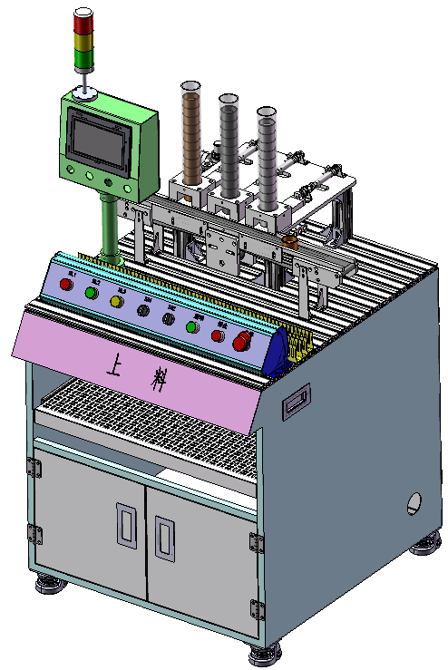 供料單元負責3種不同材料的供料,由料管、推料裝置及傳輸線等組成。具有 3D 仿真運行環(huán)境,軟件模型與本次采購實物一比一繪制,可通過滿足要求的 PLC 仿真軟件進行在線編程、虛擬調試、實時監(jiān)控等線上操作。