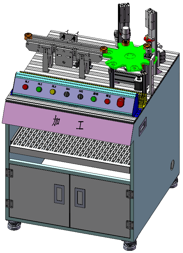 加工單元由傳輸線、加工站、轉盤機構等組成。完成物料加工、檢測及輸送等功能。