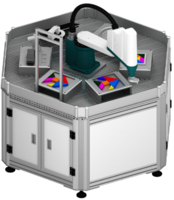 工業(yè)機器人多功能應(yīng)用實訓(xùn)裝置屬于典型的機器人基礎(chǔ)技能培訓(xùn)應(yīng)用設(shè)備,以四軸SCARA機器人為中心,根據(jù)任務(wù)要求配置不同任務(wù)載體,培養(yǎng)學(xué)生對機器人基礎(chǔ)知識的認知。該設(shè)備任務(wù)載體采用模塊化設(shè)計,具備獨立性、兼容性、可移植性等特點;并預(yù)留了擴展與升級的接口,根據(jù)市場需求進行不斷的開發(fā)升級或者學(xué)校用戶自行創(chuàng)新設(shè)計新的功能模塊。