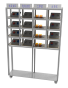 貨位數(shù)量:4 行×4 列 16 個貨位 整體尺寸:1640×400×1800mm 貨位傳感器:光電式、二維碼 材料:鋁型材 托盤:尼龍塑料定制 |