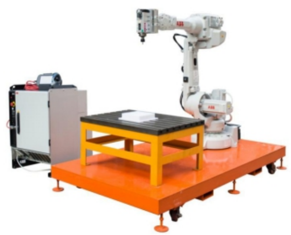LGY-XJ09A型工業(yè)機器人銑削加工系統(tǒng)控制和應(yīng)用裝備,主要由工業(yè)機器人、銑削設(shè)備及附屬裝置、機器人安裝底座、工件承載臺及夾具、安全防護系統(tǒng)、電氣控制系統(tǒng)、軟件等組成??赏瓿蓪ο到y(tǒng)構(gòu)成、調(diào)試、二次開發(fā)等進行教學(xué)和工程實施,同時也可對鋁件和非金屬件進行銑削加工,也可根據(jù)加工對象的不同對夾具進行二次開發(fā)和改進。對SMC材料或FRP材料厚度4mm銑削速度可達到30mm/s。