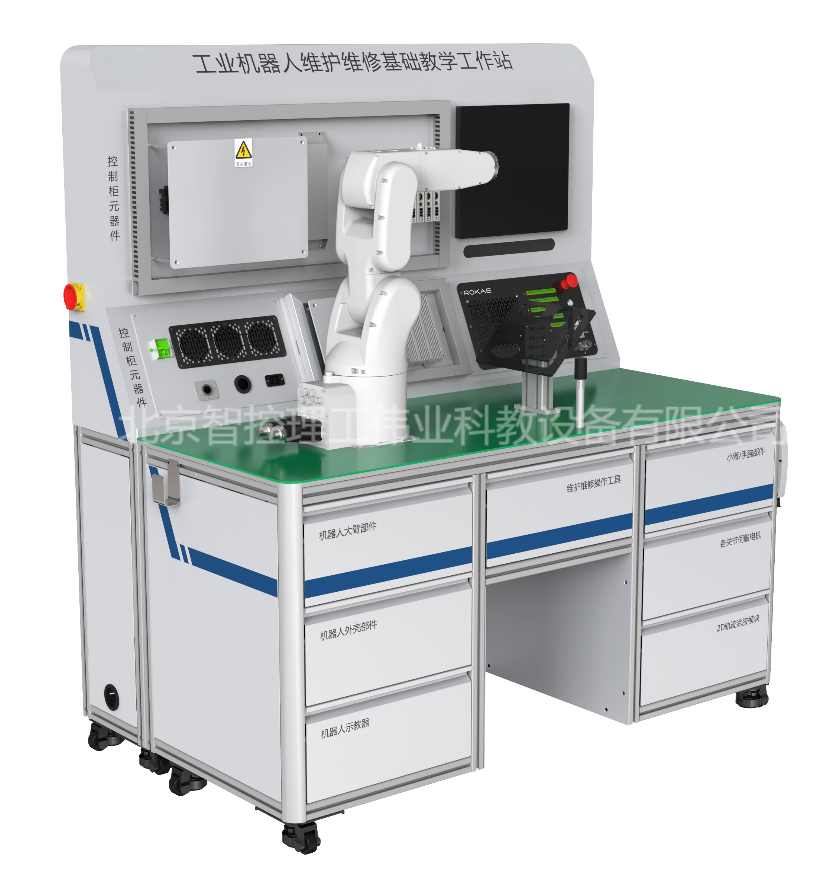 工業(yè)機器人維護(hù)維修基礎(chǔ)教學(xué)工作站,以工業(yè)機器人本體及其控制系統(tǒng)最常見維護(hù)維修操作為核心,通過對典型故障的診斷和排除,按照規(guī)范步驟完成對工業(yè)機器人本體的拆裝過程,并根據(jù)圖紙要求搭建控制系統(tǒng)并接線,由零件級深入了解工業(yè)機器人的構(gòu)成形式和運動方式,掌握基礎(chǔ)維護(hù)維修技能。工作站配套了與生產(chǎn)廠家完全相同的工裝、工具,讓學(xué)生可以在教學(xué)環(huán)境中充分體驗高精度機電設(shè)備的生產(chǎn)工藝要求,確實掌握維護(hù)維修技能。