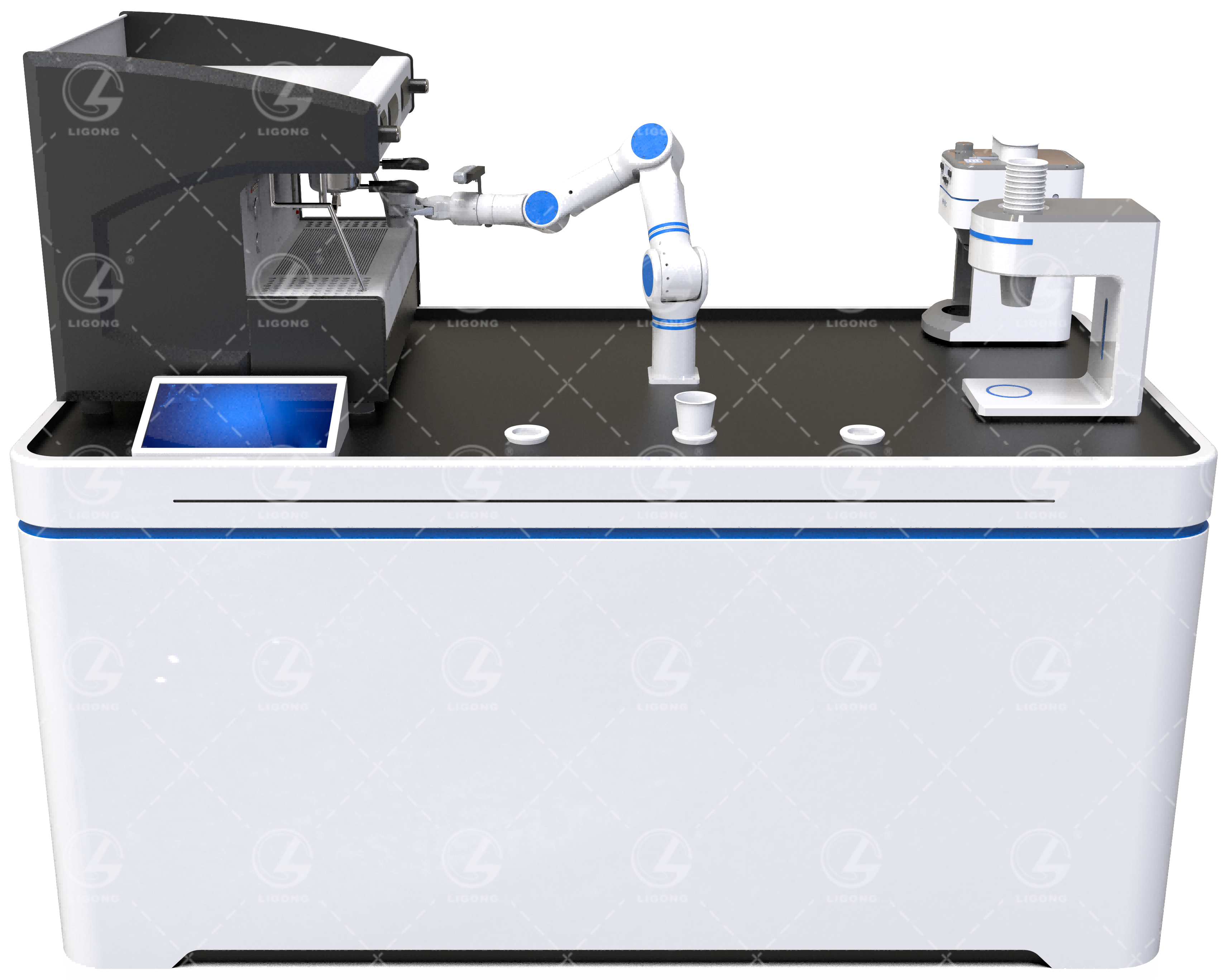 (3)咖啡機(jī):全自動咖啡機(jī),支持多種預(yù)設(shè)飲品配方,具備自動清洗功能,可通過通訊接口與機(jī)器人聯(lián)動控制;