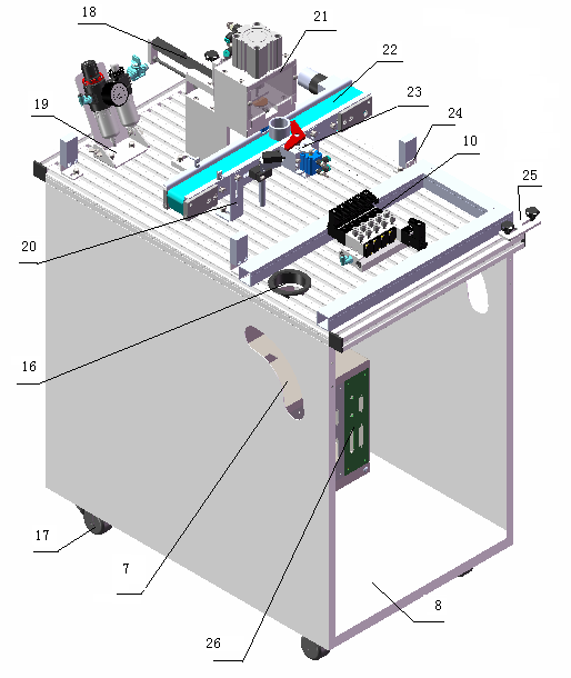 該系統(tǒng)的各站是安裝在帶槽的鋁型板上,各站可容易的連接在一起組成一條自動加工生產(chǎn)線。站內由各種模塊化形式構成,各模塊之間易于搭建、拆卸和維護,各工作站之間可隨意組合。