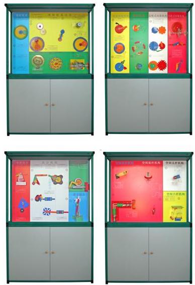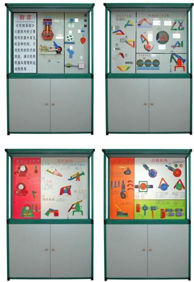 本設(shè)備是根據(jù)大中專院校、職業(yè)學(xué)校的教學(xué)大綱設(shè)計(jì)的機(jī)械陳列柜,《機(jī)械基礎(chǔ)》電化教學(xué)設(shè)備。陳列柜共分十個(gè)柜和一個(gè)電腦控制臺(tái),進(jìn)行多媒體聲控同步解說演示。由PC機(jī)電腦控制順序或任選運(yùn)行每個(gè)柜模型動(dòng)作,同時(shí)電腦播放圖像或三維動(dòng)畫同步模型動(dòng)作。