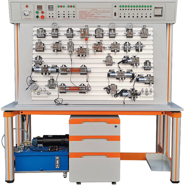 該實驗臺所有的透明液壓元件均采用進(jìn)口透明有機玻璃材料應(yīng)現(xiàn)代加工工藝制作而成,可清晰直觀的觀察和了解到液壓元件的內(nèi)部結(jié)構(gòu)原理及液壓傳動回路的工作過程。該系統(tǒng)既可對單個液壓元件的結(jié)構(gòu)、工作原理及性能進(jìn)行教學(xué),也可以對常見基本回路的實驗演示學(xué)習(xí),同時也可以進(jìn)行液壓系統(tǒng)的課程設(shè)計和畢業(yè)設(shè)計。
