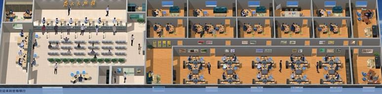 LG-RCJ03A 現(xiàn)代商業(yè)銀行模擬教學平臺對于現(xiàn)代商業(yè)銀行的工作環(huán)境進行全面仿真,包括營業(yè)大廳的布局,對公對私的工作臺、貸款管理部門的辦公室等全3d的建筑仿真;工作人員日常業(yè)務使用的綜合業(yè)務系統(tǒng)等核心業(yè)務軟件和各種業(yè)務單據(jù);簽章、電腦、打印機、點鈔機、票箱、打碼機、壓數(shù)機等辦公設備。并且在模擬實操中讓學生來熟悉和使用。