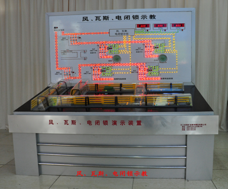 該風(fēng)電、瓦斯閉鎖示教盤裝置(適合于一、二、三、四級(jí)),采用聲、光、電直觀顯示電路,風(fēng)路流程原理,自動(dòng)模擬瓦斯檢測(cè),通風(fēng)系統(tǒng),煤電站工作原理及各種電器設(shè)備,模擬風(fēng)電、瓦斯電閉鎖系統(tǒng)及閉鎖關(guān)系,實(shí)現(xiàn)1.0%報(bào)警,1.5%斷電的光電演示。