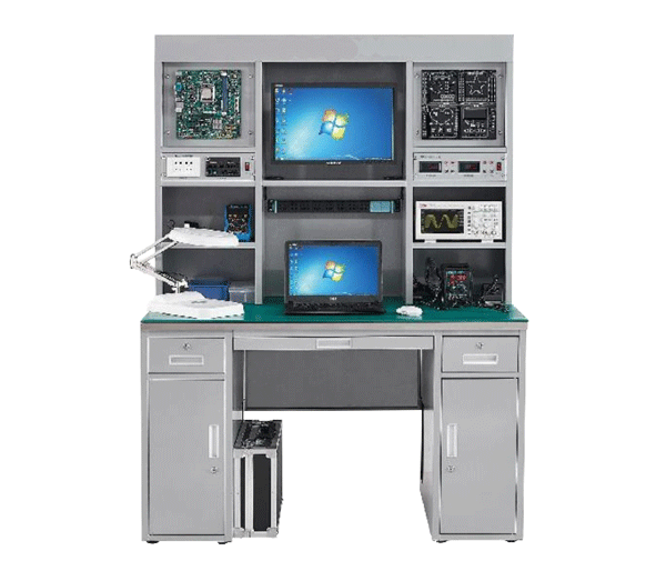 1、實訓裝置可分層擺放顯示器、示波器、熱風槍、恒溫焊臺、穩(wěn)壓電源、萬用表、放大鏡臺燈、維修常用工具及元器件和備品。
