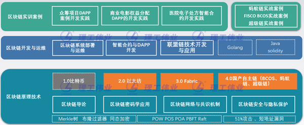 區(qū)塊鏈實驗教學(xué)平臺內(nèi)置豐富的實驗教學(xué)資源,課程涵蓋區(qū)塊鏈導(dǎo)論、區(qū)塊鏈密碼學(xué)應(yīng)用、區(qū)塊鏈網(wǎng)絡(luò)與共識機制、區(qū)塊鏈系統(tǒng)部署與運維、智能合約與DAPP開發(fā)、聯(lián)盟鏈技術(shù)開發(fā)與應(yīng)用及典型開發(fā)案例等內(nèi)容,并配套PPT、教學(xué)講義、實驗指導(dǎo)手冊等授課資料。