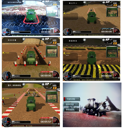 ★推土機(jī)模擬機(jī)課題數(shù)目共8個(gè):空動(dòng)作、基礎(chǔ)駕駛、作業(yè)訓(xùn)練、應(yīng)用作業(yè)、推土機(jī)拆裝、駕駛考核、單項(xiàng)作業(yè)考、綜合作業(yè)考。